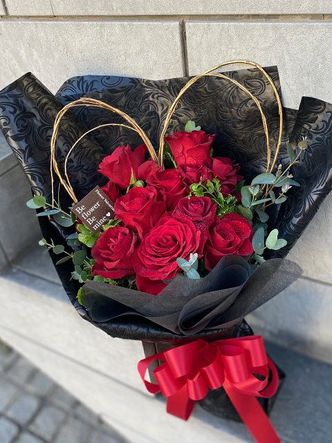 赤薔薇が入ったシックな花束