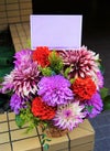 ダリアのコントラストが織りなす大人の魅力に釘付け!ラウンドタイプなので360度どこから見ても美しいです。