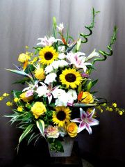 煌めく黄色の豪華スタンド花