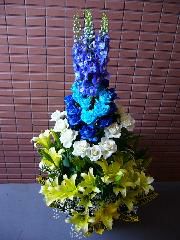 あなたは 見たことある? ブルーのバラを! 本物の生花だよ。ブルーの濃いバラ 薄いバラのグラデエーシヨンに 白バラでおしゃれにまとめました。 ※ご注文はお早めに! スタイル:アレンジメント 奥行:約50cm×幅:約50cm×高さ:約100cm 花材:メイン ブル・白のバラデルフィニュームユリ その他 資材・ラッピング:高級なかご