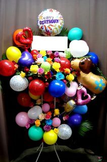 LED電球が色々なバラを輝かせます。暗い場所でも キラキラ輝き超目立ちます。 バルーンと生花がマッチして なんと美しい! スタイル:スタンド花 奥行:約 60cm× 幅:約 110cm× 高さ:約 180cm