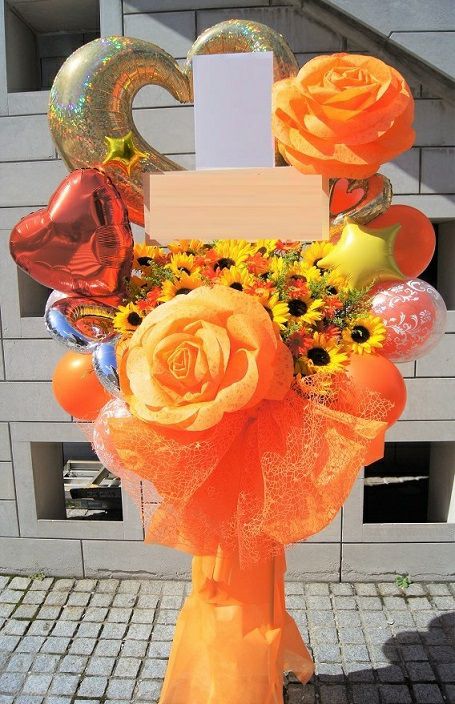 ペーパーフラワーを入れて、オレンジ系のJUICYなフラワースタンドに仕上げます!! 色変更など可能ですのでお気軽にお問い合わせください! 高さ:約230cm 幅:約110cm ※低くすることも可能ですので購入時にお知らせください。 ※仕入れ状況により花材や資材が異なる場合がございます。
