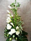 幸福の竹ミリオンバンブーを白とグリーンで飾りました。デザインの美しさで人目をひきます。 ※地方へのお届けの場合は、宅急便にて発送致します。大きさの規定内でのお作りになりますので、サイズが小さくなります。予めご了承下さい。 奥行:約 30cm× 幅:約 35cm× 高さ:約 80cm